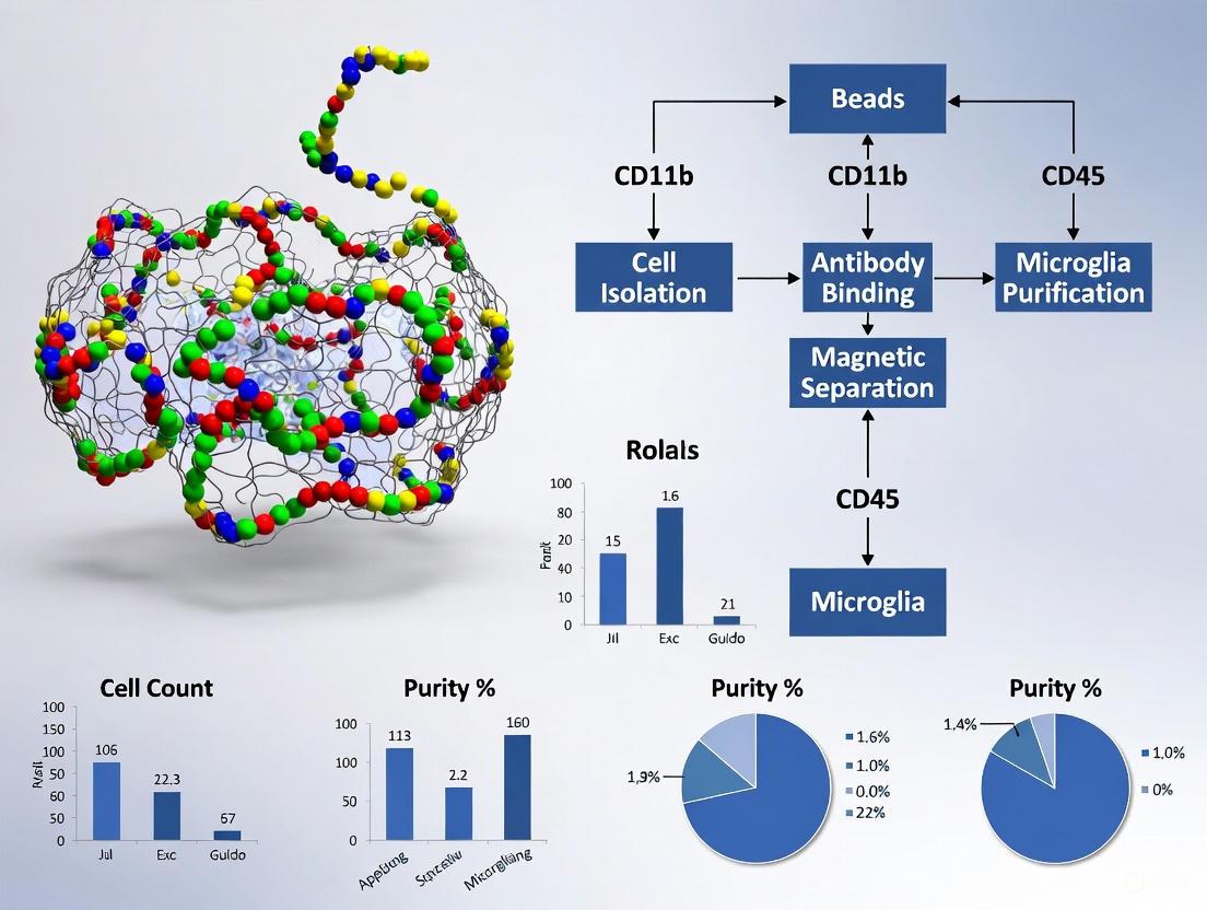 The key to successful microglia isolation lies in targeting specific cell surface markers. A common target is CD11b, a surface antigen highly expressed on microglia and other myeloid cells [4]. Antibodies against CD11b are conjugated to magnetic beads following the protocol above. When added to a single-cell suspension prepared from mouse brain tissue, these beads bind specifically to microglia. Subsequent magnetic separation pulls the CD11b-positive microglia out of the suspension, leaving behind neurons, astrocytes, oligodendrocytes, and other non-target cells [3]. This method, known as positive selection, directly isolates the cells of interest. It is often favored for its high specificity and purity. Comparative studies have shown that magnetic bead-based separation protocols can provide an optimal yield of functional microglial cells with minimal activation, making them suitable for downstream functional assays [4].