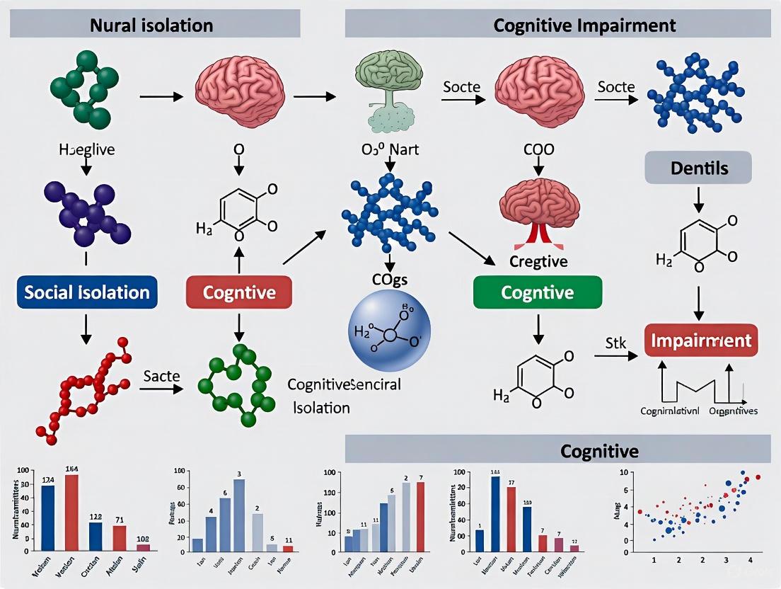 The evidence conclusively demonstrates that social isolation and loneliness significantly contribute to cognitive decline through multiple biological pathways, creating a self-reinforcing cycle that accelerates brain aging. Key mechanisms include neuroendocrine dysregulation, neuroinflammation, and structural brain changes, offering promising targets for therapeutic intervention. Future research should prioritize developing mechanism-based treatments that enhance cognitive control, modulate reward systems, and reduce stress reactivity. Cross-species approaches and advanced methodologies will be crucial for validating targets and translating findings into clinical applications. For drug development, focusing on the modifiable nature of social connection presents a unique opportunity to develop novel therapeutics that disrupt the isolation-cognition cycle, potentially delaying or preventing dementia onset in vulnerable populations.