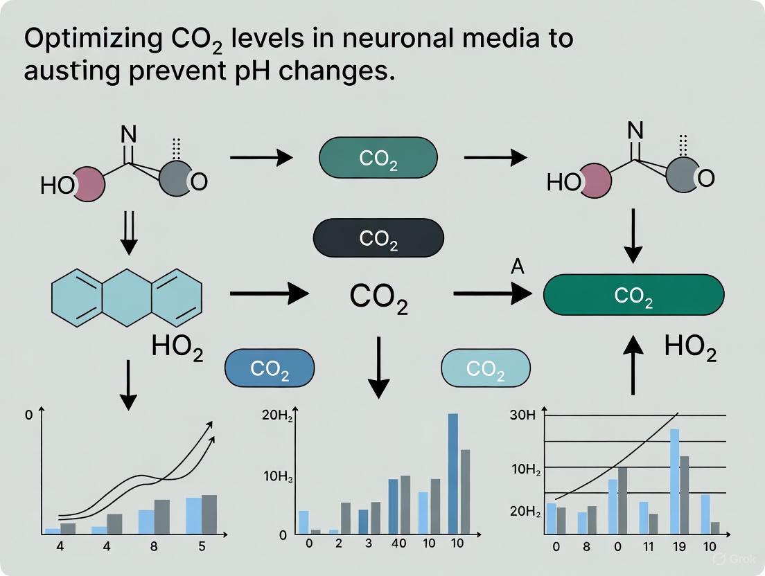 Q1: Why is controlling CO2 levels so critical in neuronal cell culture, particularly for electrophysiology? The culture medium's pH is primarily regulated by the CO2/HCO3− buffer system. CO2 from the incubator atmosphere diffuses into the medium, forming carbonic acid and lowering the pH. An unstable CO2 level directly causes the medium pH to fluctuate. Since neuronal excitability is exquisitely sensitive to both intracellular and extracellular pH [1], such fluctuations lead to highly variable and irreproducible electrophysiological recordings.