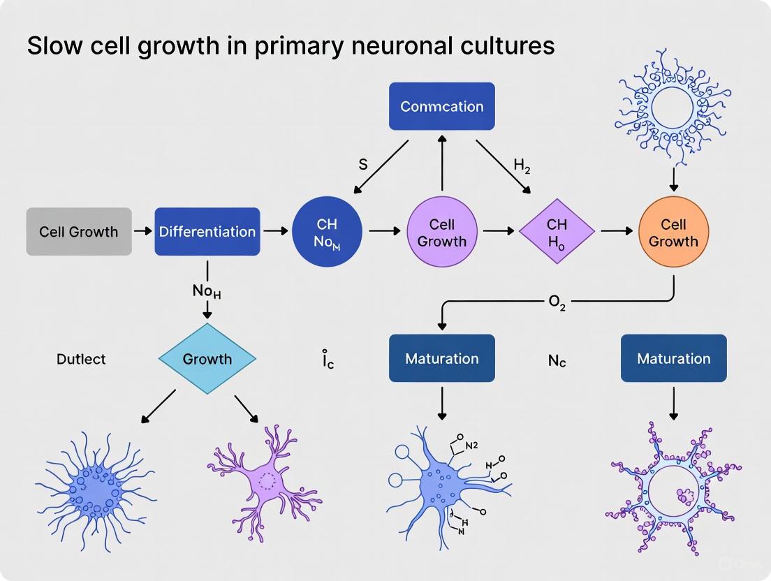 Q1: My primary rodent neurons are exhibiting slow neurite outgrowth and low viability after 5 days in culture. What are the primary culprits? A1: Slow growth in primary neurons is frequently attributed to the initial plating conditions and media health.