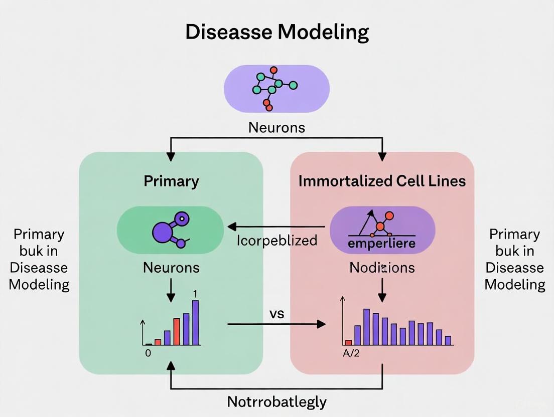 Selecting the appropriate cellular model is a critical strategic decision in neuroscience research and drug development. This article provides a comprehensive comparative analysis of primary neurons and immortalized cell lines for disease modeling. We explore the foundational biology of each system, detail their methodological applications in 2D and 3D cultures, address key troubleshooting and optimization challenges, and present a rigorous validation framework for model selection. Aimed at researchers and drug development professionals, this guide synthesizes current evidence to empower informed decision-making, enhance experimental reproducibility, and improve the translational potential of preclinical findings in neurological and neurodegenerative disease research.