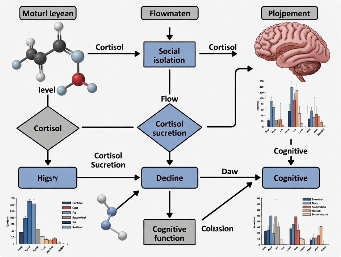 This article synthesizes current evidence on the pathway from social isolation to cognitive impairment, with a focus on cortisol as a key mechanistic mediator. For researchers and drug development professionals, we detail the foundational neurobiology, including HPA axis dysregulation, neuroinflammation, and structural brain changes. The content explores advanced methodological approaches like longitudinal neuroimaging and statistical models for causal inference, addresses troubleshooting for confounding factors and measurement challenges, and provides a comparative validation of animal and human models. The objective is to inform biomarker development and targeted therapeutic interventions for mitigating isolation-induced cognitive risk.