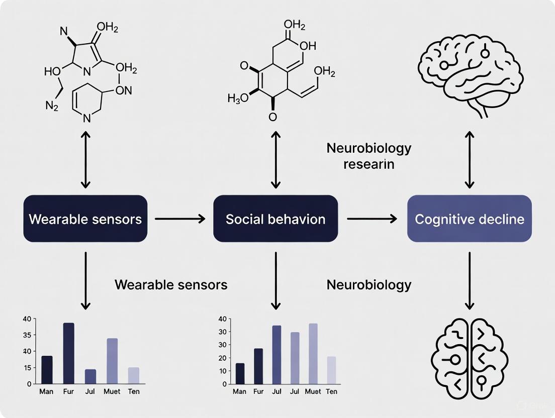 This article synthesizes current research and methodological approaches for using wearable sensors to quantify social behavior and motor patterns as digital biomarkers for cognitive decline.